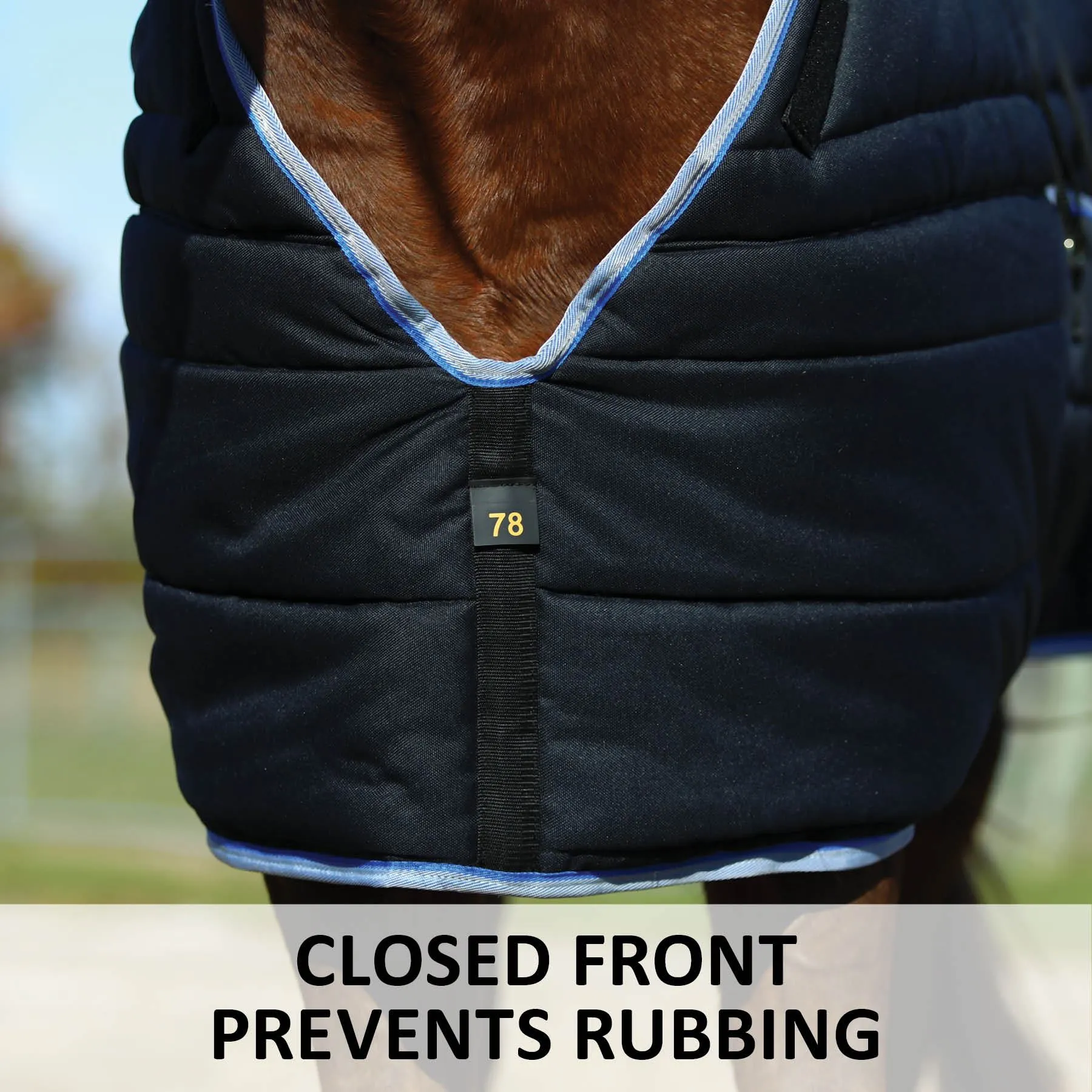 This heavy-duty heavyweight stable blanket allows your horse to stay comfortable and warm in the stable. Aridity™ Bamboo Charcoal inner layer wicks moisture away from the horse, keeping them more comfortable during temperature changes. Is static reducing and antibacterial. Breathability keeps your horse from overheating and the featuring “Original” Adjusta-Fit® System is designed to adjust the size of the neck up to 2″, so you get a custom fit no matter the shape of your horse.
