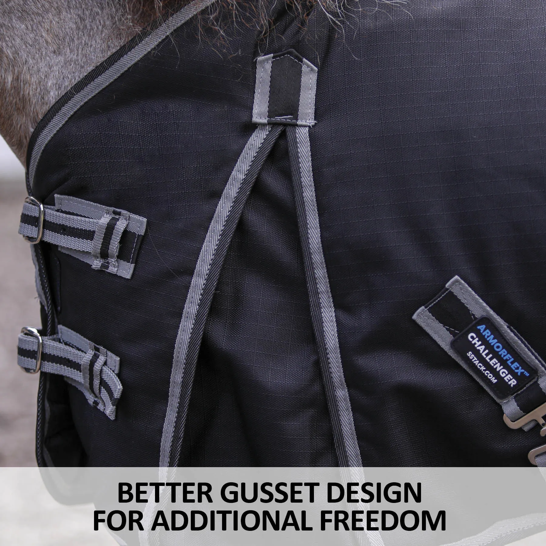 Your beloved mini horse can conquer any weather challenge with the ARMORFlex® Challenger II Mini Turnout Blanket. It’s constructed with a 1200D ripstop polyester material that provides extreme durability, making it the perfect choice for your most playful mini. This blanket features improved waterproofing and breathability ratings with exceptional breathability, ensuring your horse stays dry and comfortable all season.