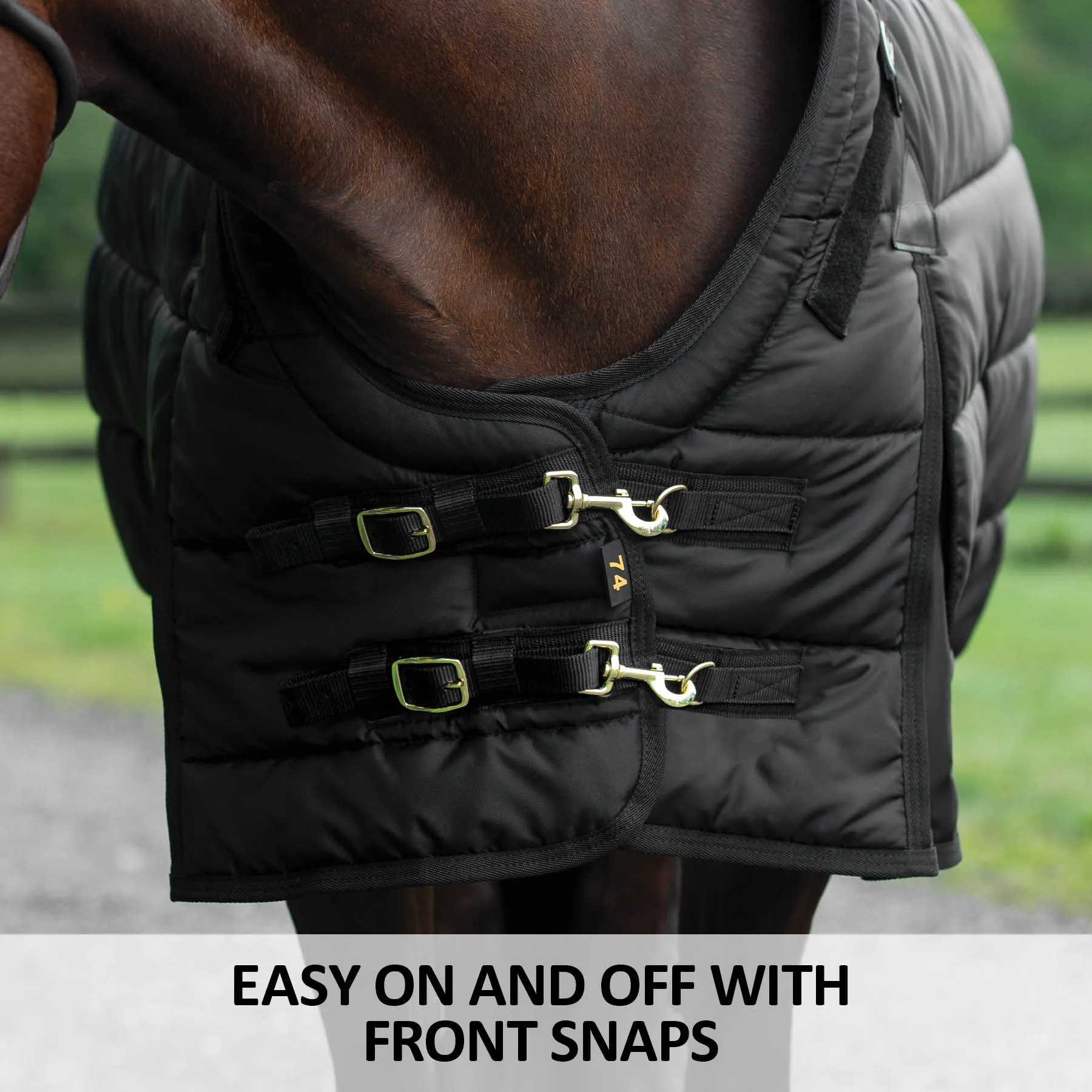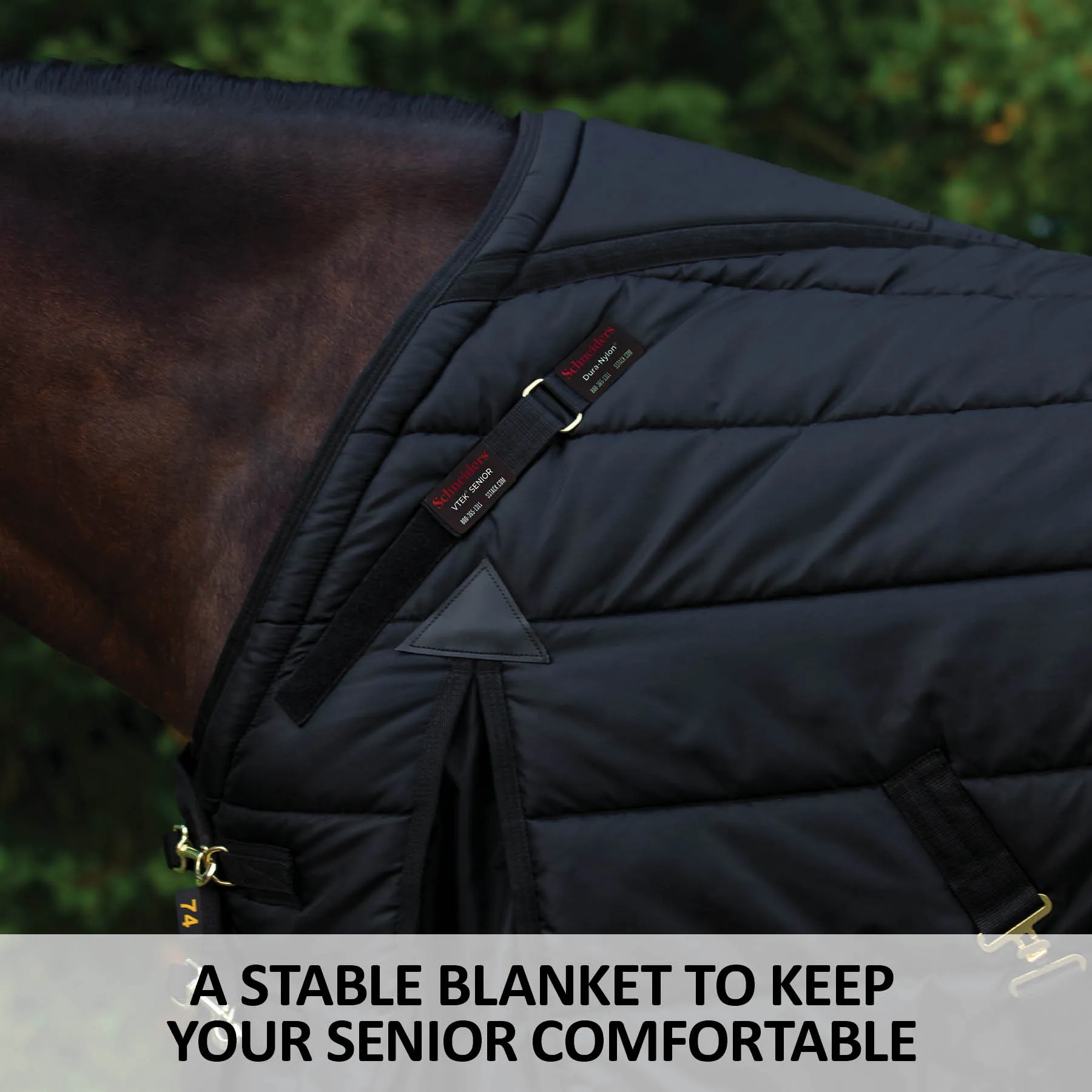 The Dura-Nylon® Adjusta-Fit® VTEK® Senior Medium Weight Stable Blanket is specially designed with the unique needs of your senior horses in mind. As senior horses often lose muscle mass and gain more prominent bone structure, fitting them with regular blankets can cause irritating rubs. However, we’ve extended our patented VTEK® Wither Relief 4″ forward on the withers to increase coverage over the shoulder and wither areas. In addition, Memory Foam has been added to the wither area, shoulder line, and hip panels. Your Senior horse often loses mass in these areas, and the bone structure becomes more prominent. The memory foam is an additional layer of protection from rubs and sores as your older horse may lay down more.