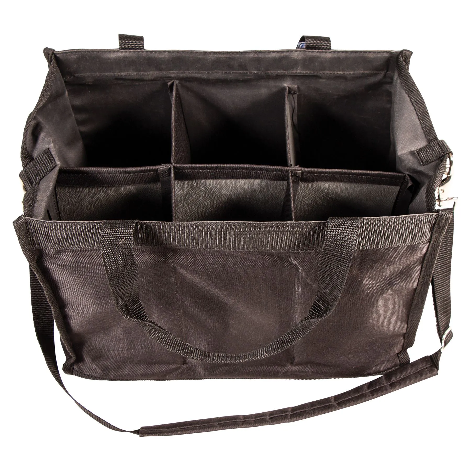 Made of 600D poly fabric, this tote bag is perfect for polo wraps, leg quilts, splint boots, spray bottles or brushes. Keep yourself organized and makes carrying items to your stall, car or barn a breeze!