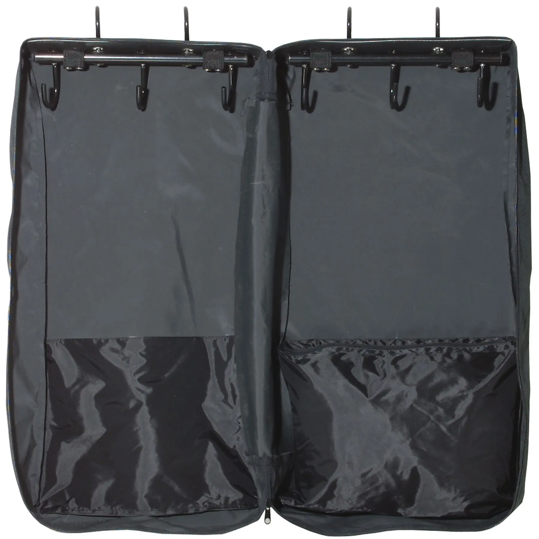 - Hangs nicely in trailer or tack stall with 2 swivel top hooks