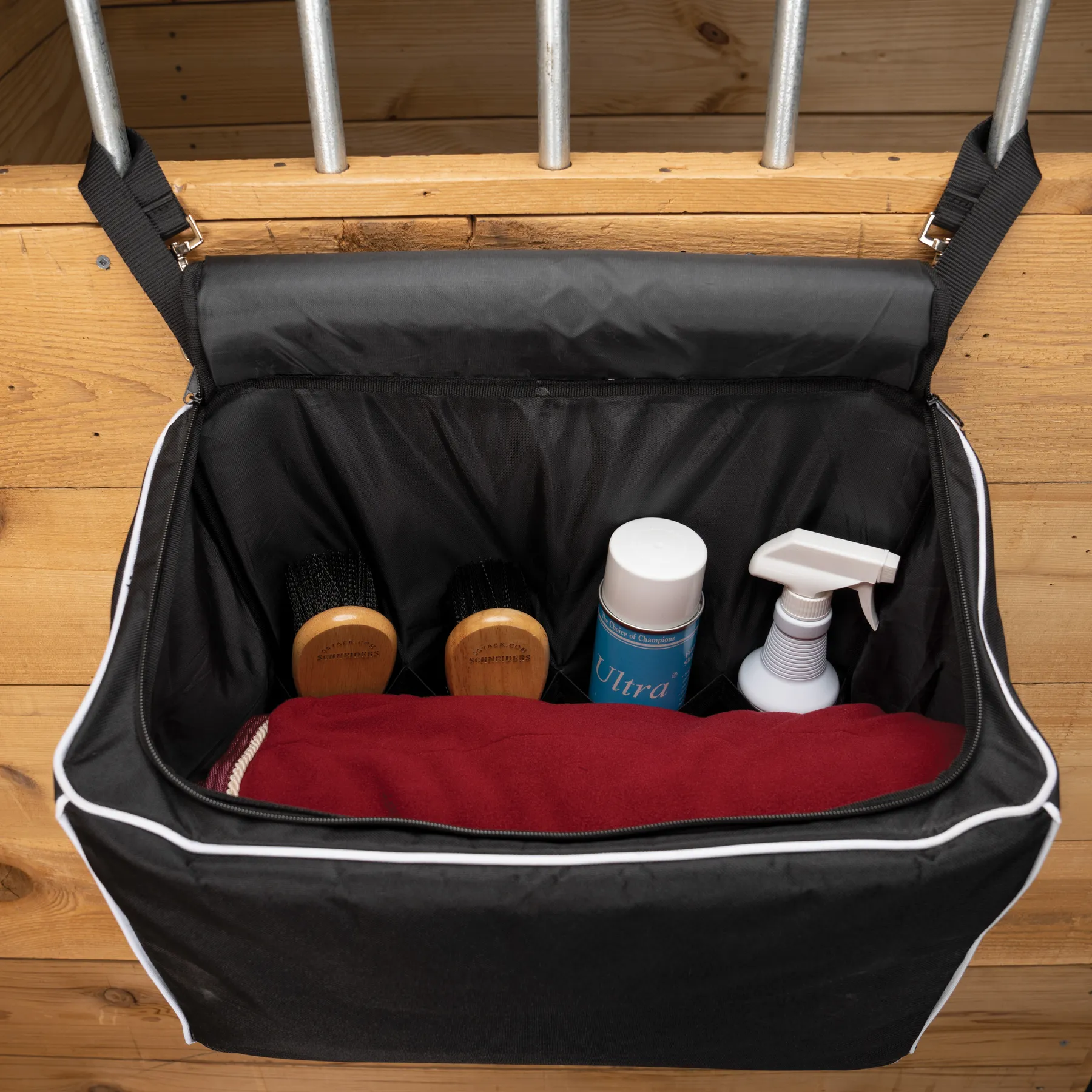 Whether in your barn or at shows, the Dura-Tech® EZ Store Bag makes organizing your supplies easy! This storage bag is deep and can hold a sheet, cooler, horse boots, wraps, and more. Plus, the 4 handy inside elastic straps help keep your spray bottles and brushes secure in place. The padded structure helps the bag hold its shape, making it easy to pack and find the supplies that you’re looking for. This storage stall front bag is a must have for horse owners!