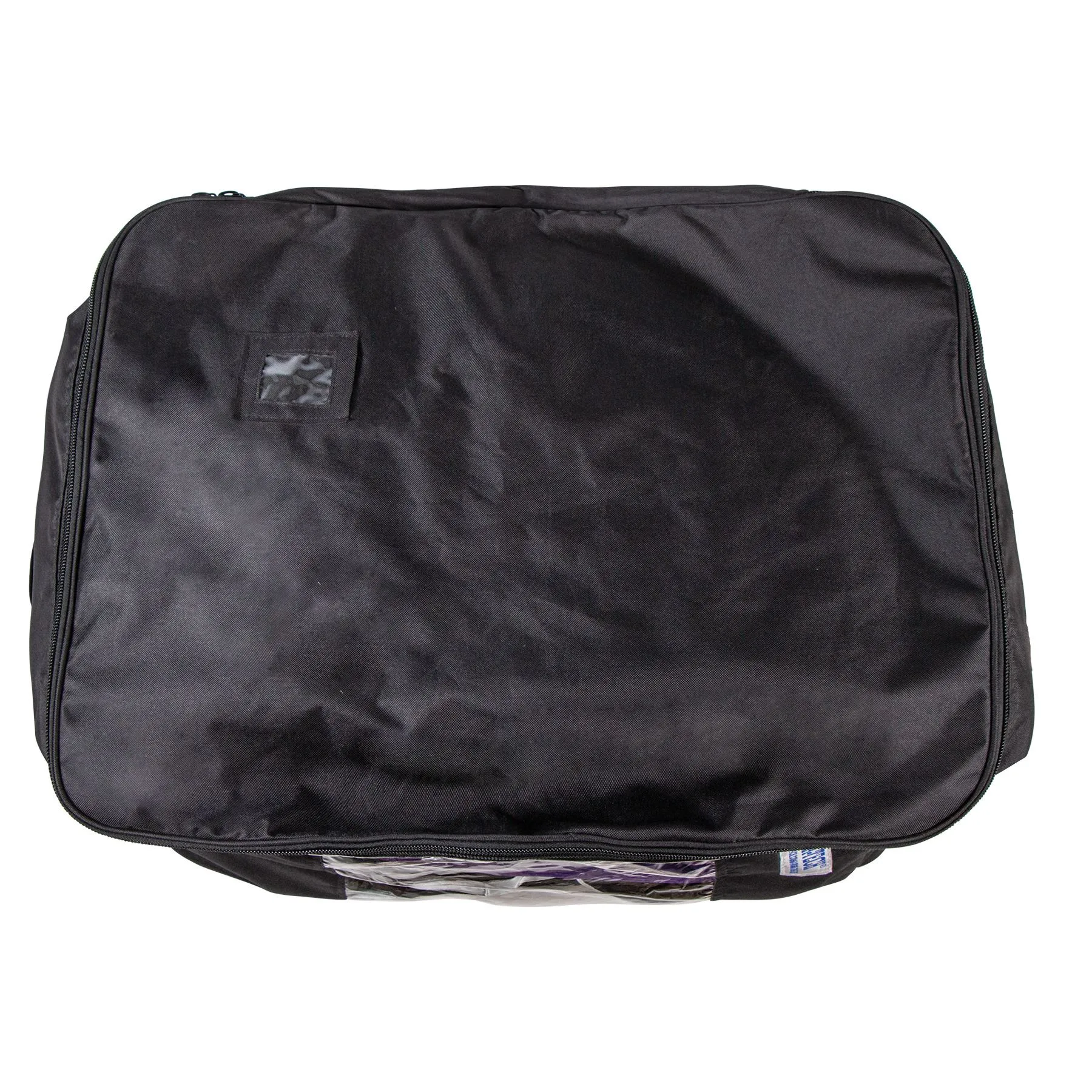 The Dura-Tech® EZ-Store Saddle Pad Storage Bag is a great way to keep your tack room or horse trailer organized. The clear see-through front panel makes it easy to see what blanket, sheets, or saddle pads are stored in the bag, and the label slot lets you insert your name or your horse’s name to keep things organized. The three-sided zipper lid makes loading easy, and the carrying handles make it convenient to transport. The saddle pad storage bag is made of strong 600 denier polyester for long-lasting use and is nylon lined for easy cleaning. It’s a great way to keep your horse gear organized and tidy.