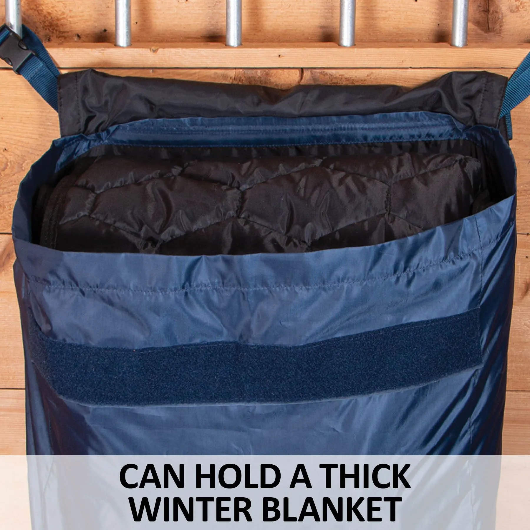 Will accommodate 1 stable or 1 turnout blanket at a time or 2 sheets. Made with nylon outer and inner for ease of cleaning. Includes two hanging straps as well as a center carrying strap. Size: 22″H x 20″W x 8″ D