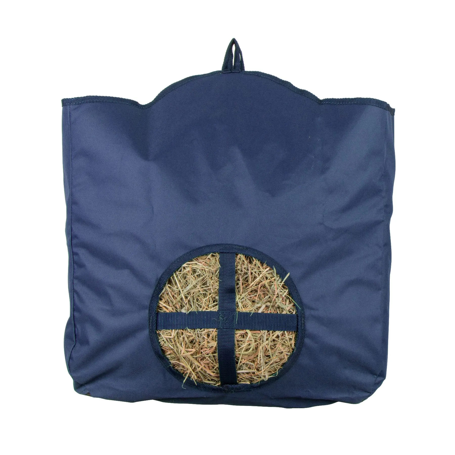 The 2 flake capacity hay bag has an 8″ diameter divided feeder hole and is an economical method of aiding digestion by slowing consumption and saving money by minimizing hay waste. This durable hay bag is perfect for entertaining horses between classes, relieving stall bound boredom and getting horses to relax while trailering.