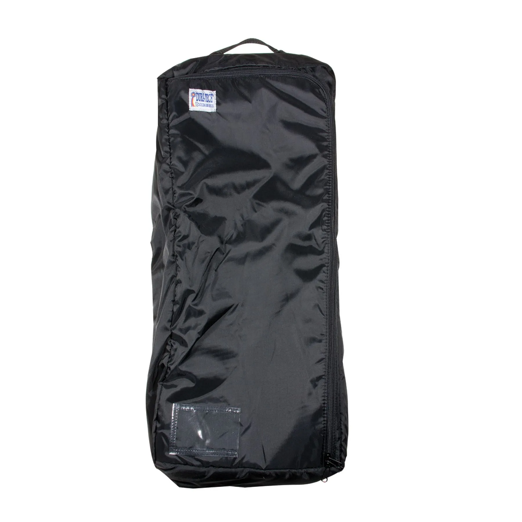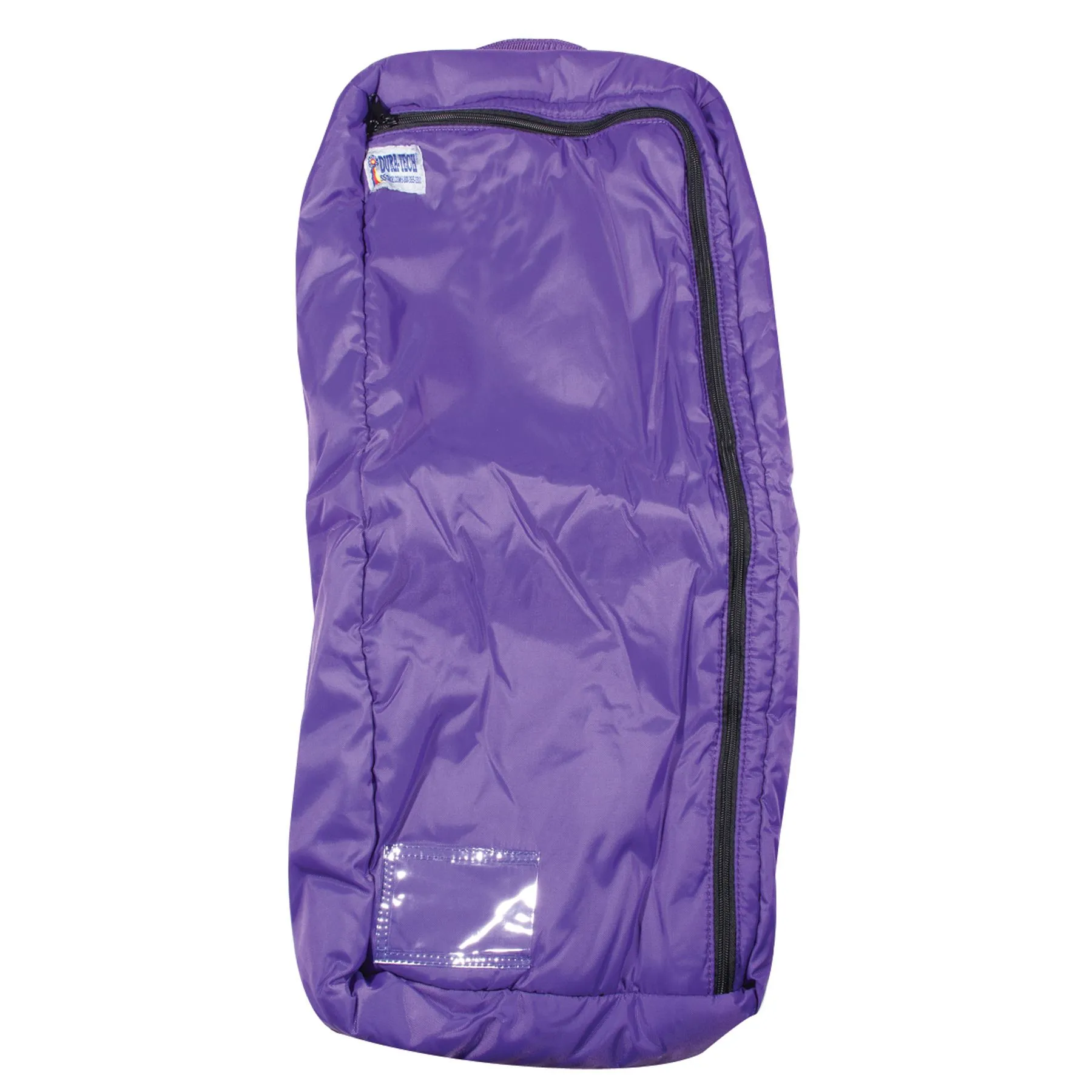 Maintain your halters and bridles in pristine show condition using the Dura-Tech® Padded Halter and Bridle Bag. The durable and water-repellent nylon bag, with quilted lining, doubles as protection for your halter or bridle. It also features a heavy-duty zipper that grants easy access to your tack. Inside the padded bag, 2 nylon snap straps secure your tack. The exterior offers a reinforced nylon web handle with a vinyl ID pocket for easy identification. It can be embroidered or silk-screened for beautiful and practical awards.