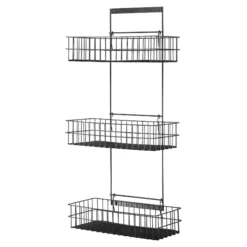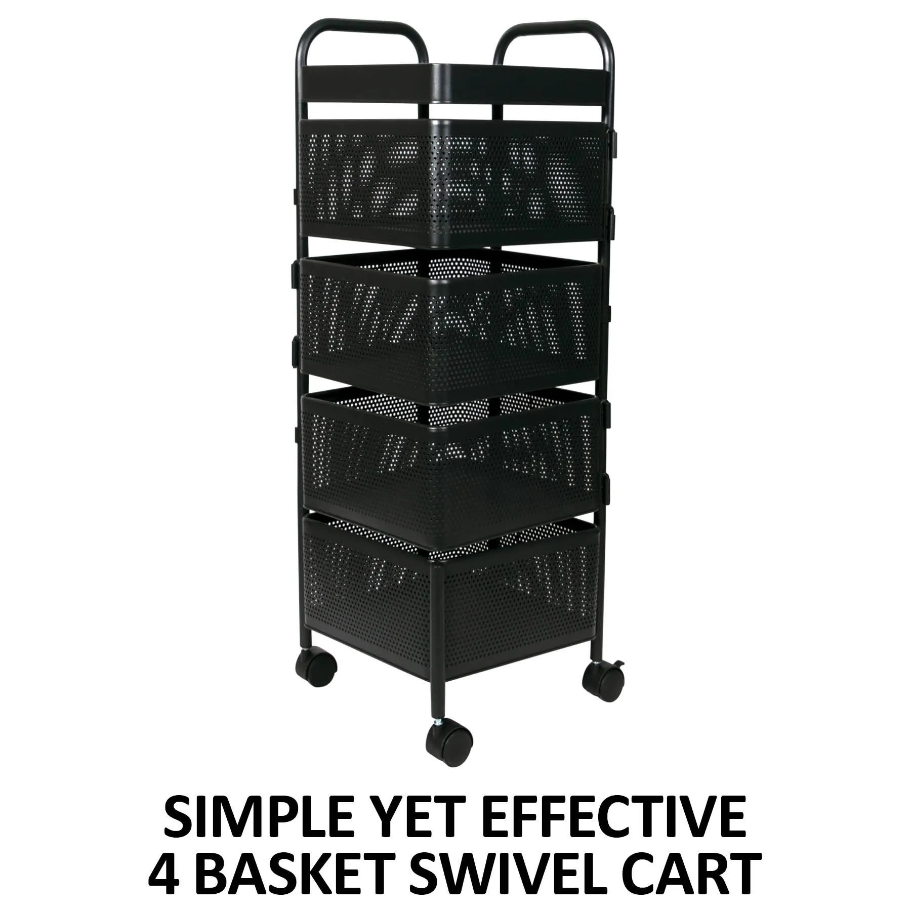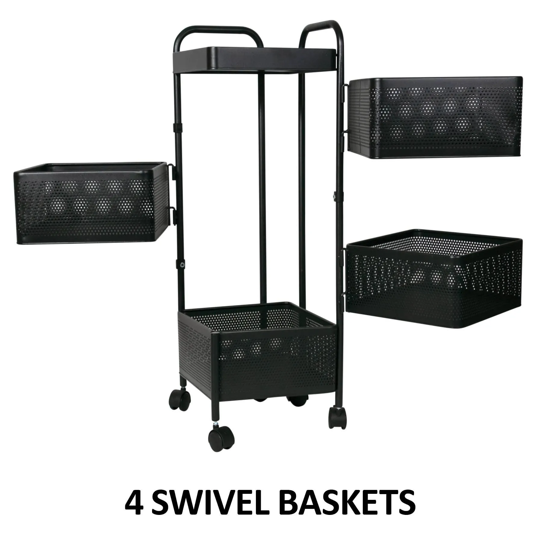 Baskets swivel out from under the cart frame for easier access to what’s inside. Dimensions: 31 1/2″ Tall x 11 1/4″ Wide x 11 1/4″ Long