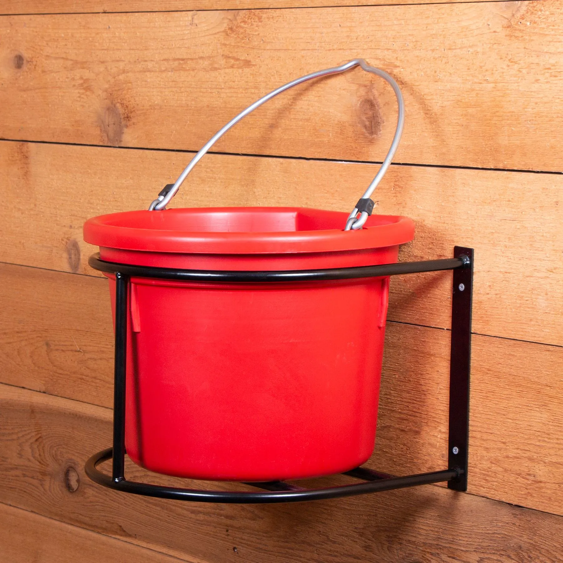 Are you looking for an easy way to hang your water or feed buckets at home? Look no further than the Easy-Up® Wall Mount Bucket Holder! This holder can accommodate a 5-gallon flat back or round water bucket and comes complete with two support bars on the bottom and mounting hardware. It also features a black powder coat finish for added durability.