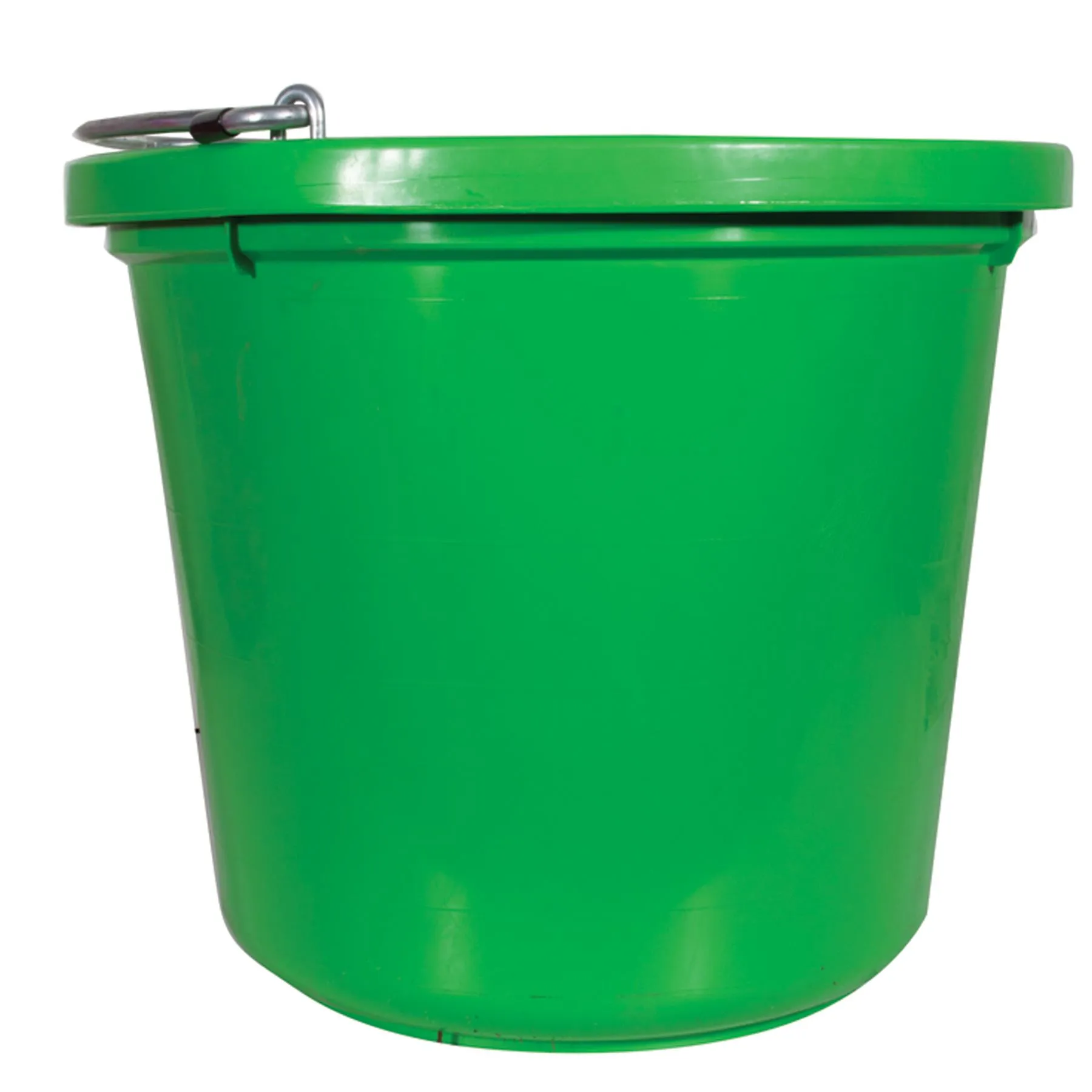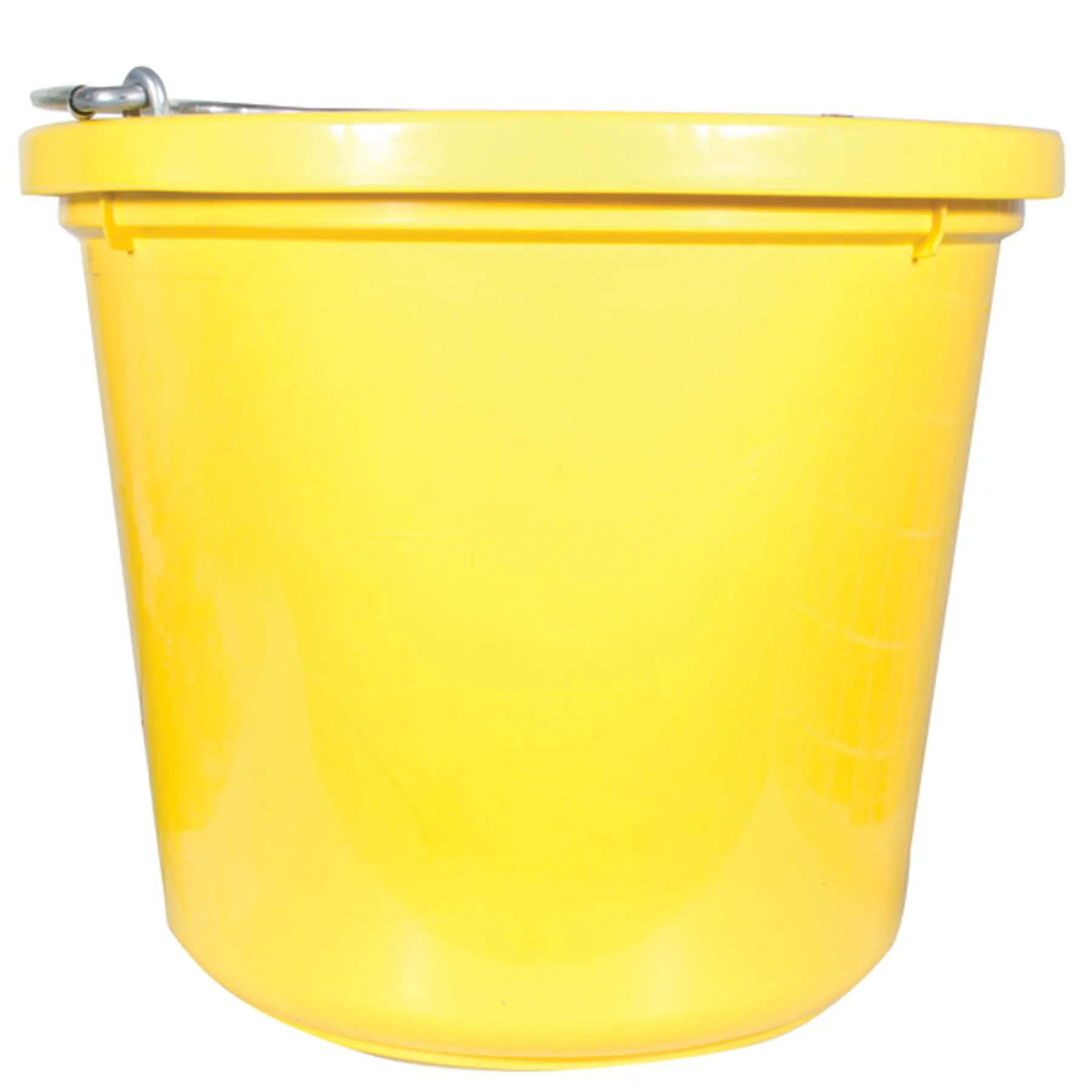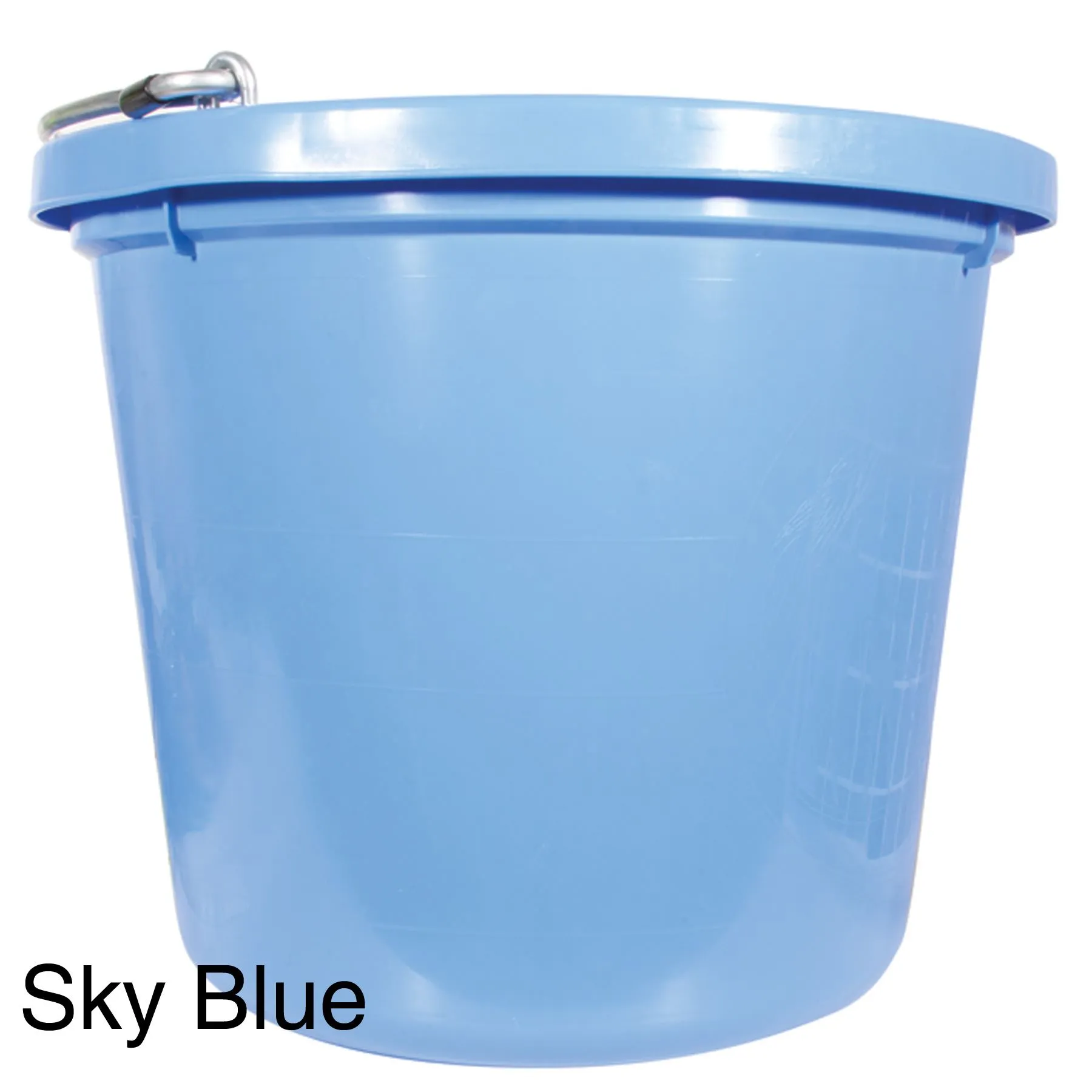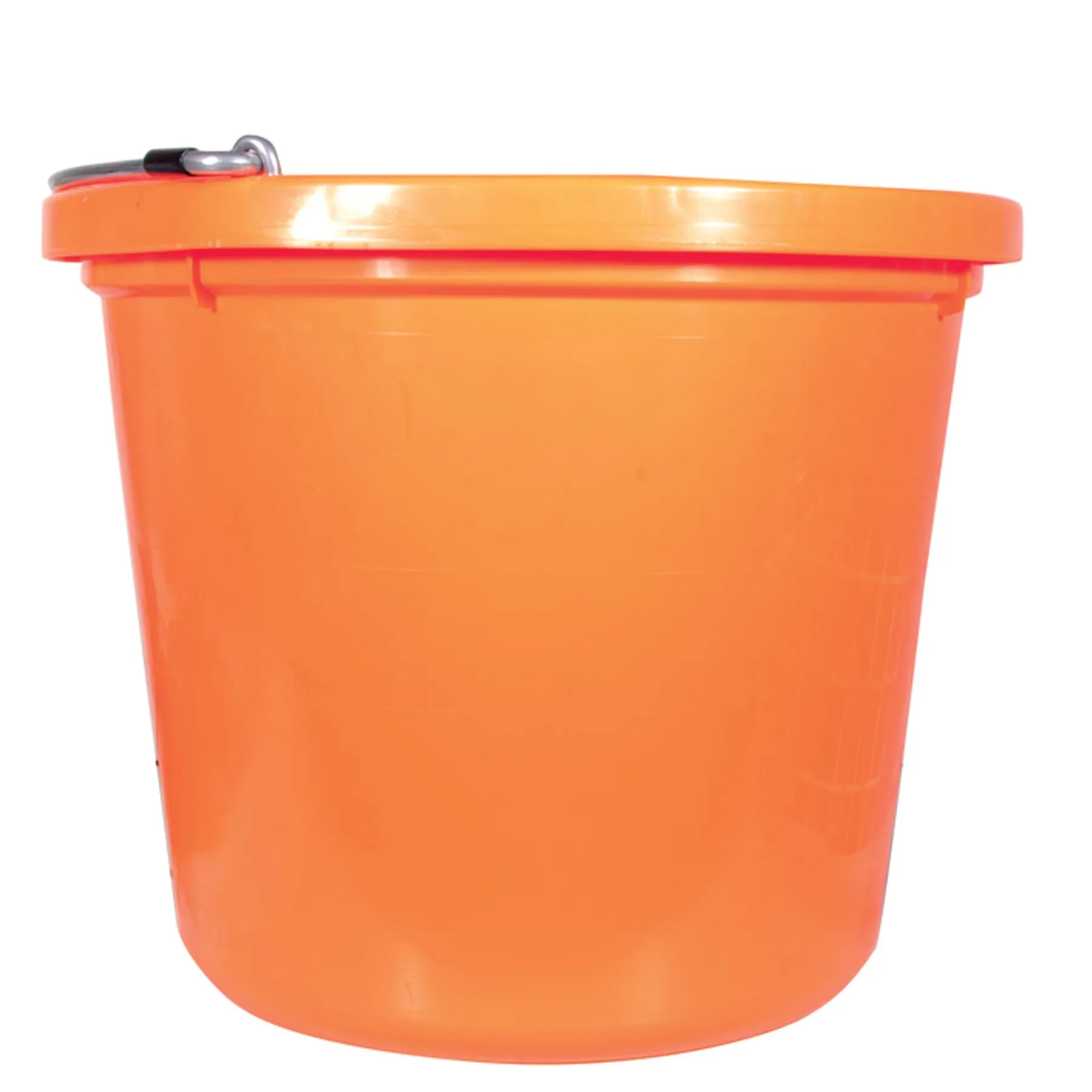 - 20 qt. capacity with flat back, calibrated in liters and gallons inside