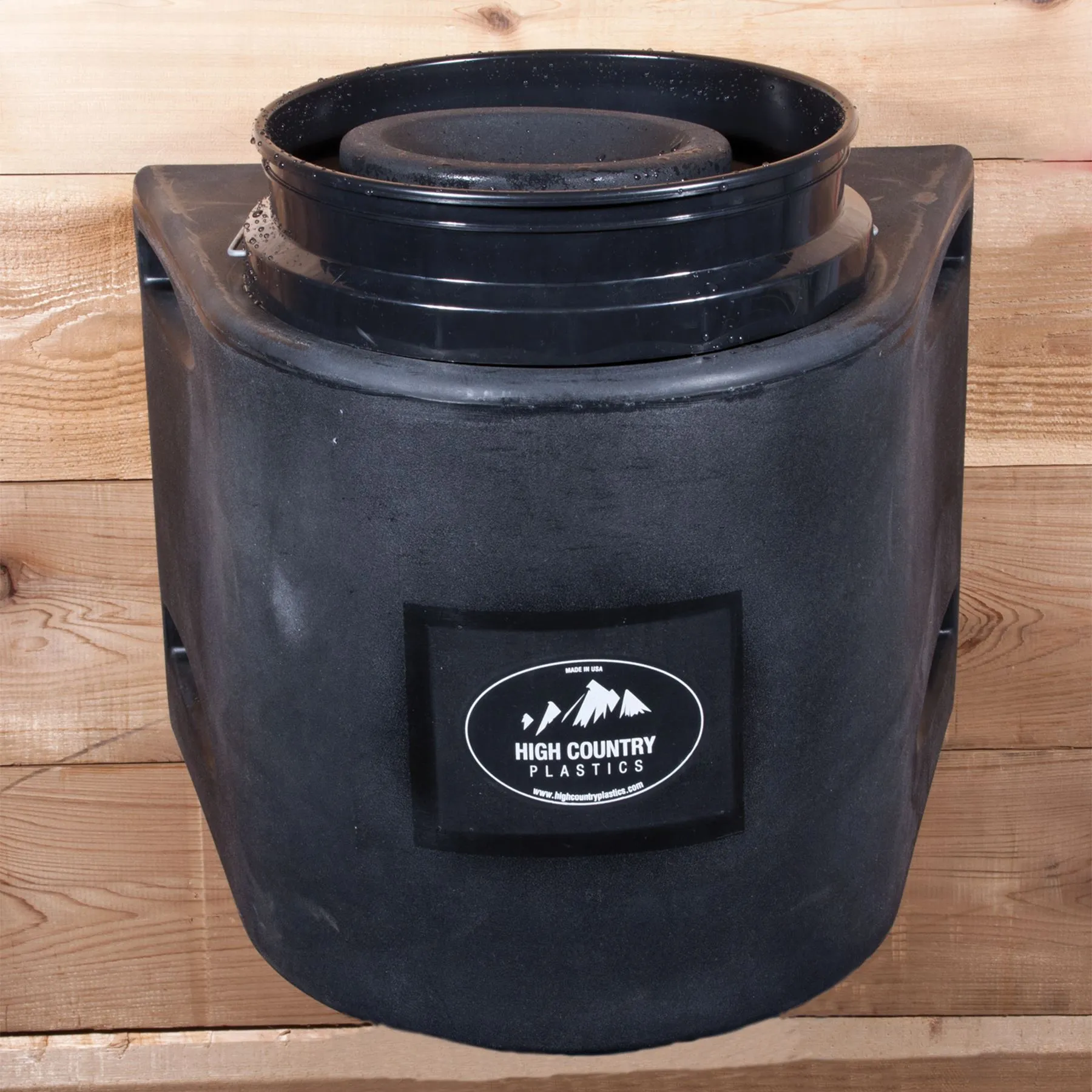 Why go through winter breaking ice daily in your horse’s water bucket? The heavy foam insulation in this water bucket holder prevents water from freezing, allowing your horse to drink freely. The float top is easy for your horse to push down and helps reduce debris keeping the water circulating to prevent surface ice. This product comes with a standard 5 gallon water bucket but you can use it without the bucket and fill the holder itself with water. The convenient drain plug makes cleaning easy.