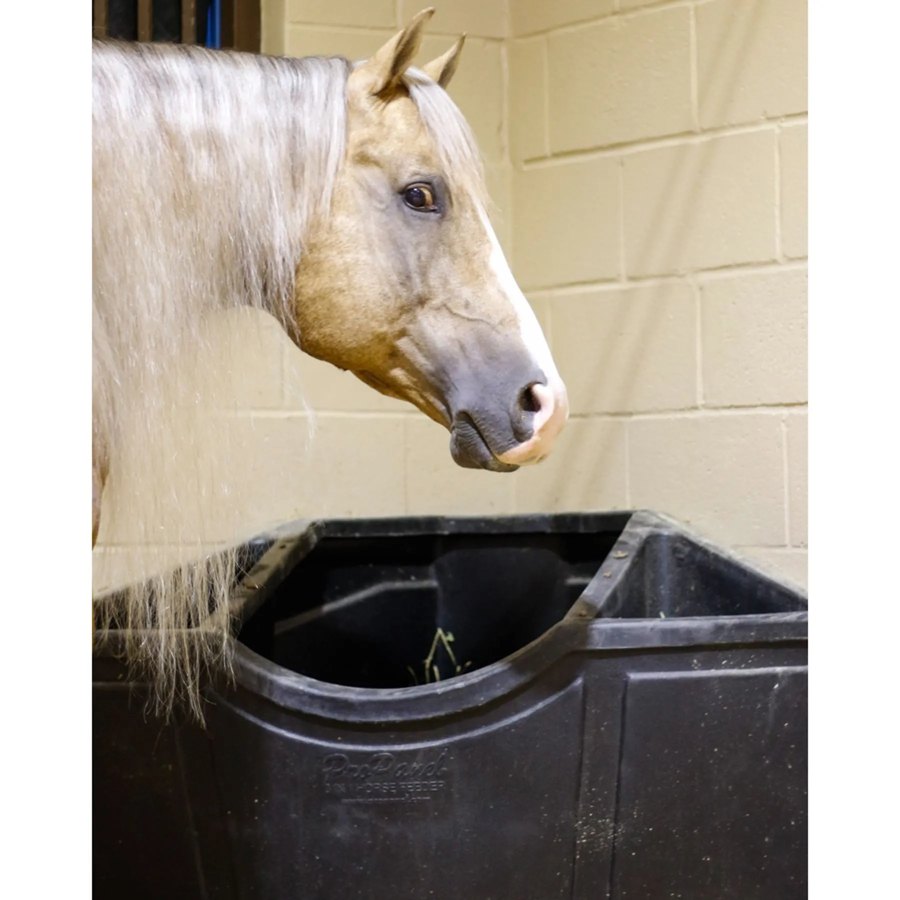 The Pro Panel Stall Grazer 3-in-1 Corner Horse Feeder is an ultra-durable feeder designed to sit at ground level and allow your horses to eat comfortably in their natural grazing position. It’s ideal for use inside box stalls or outside your barn in mare motels and runs. Horses are healthier and happier and keep the hay in the feeder, not out on the ground or stall floor. The savings in hay, shavings, and labor can easily return the cost of the feeder again and again. More Million Dollar Riders, veterinary clinics, and equine universities use the 3-in-1 feeder than any other horse feeder on the market today, attesting to how well this horse feeder performs.