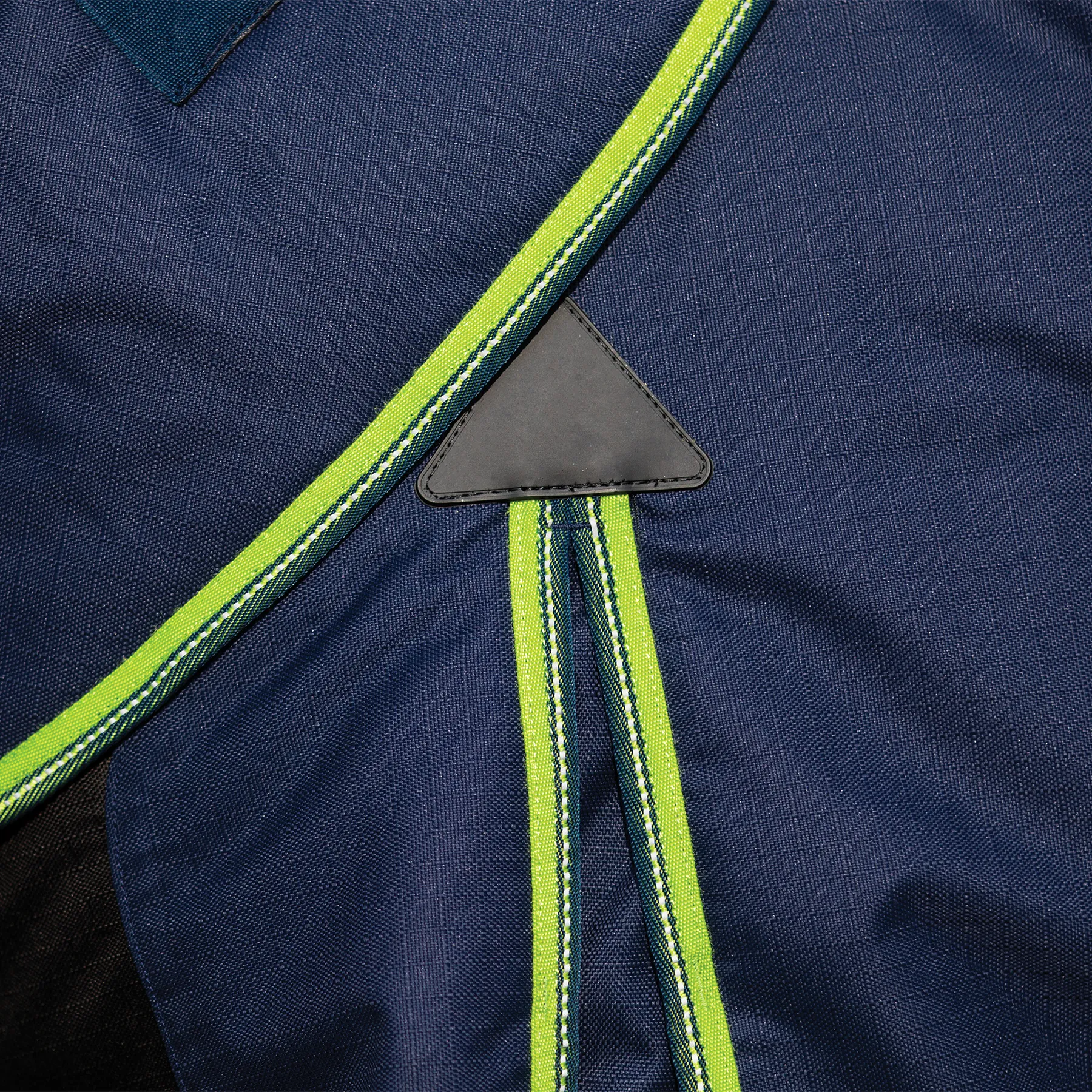 The StormShield® Contour Collar No Chew Medium Weight Turnout Blanket Neck Cover is exclusive to Schneiders® and patent pending. It’s the perfect accessory to your horse’s No Chew turnout blanket! The standout feature of this neck cover is it’s hot-to-the-taste outer coating that discourages horses from chewing on it. Crafted from 1200D Ripstop Polyester Outer with 220-gram insulation and a breathable nylon lining to enhance your horse’s coat, this neck cover offers extreme durability and warmth in weather ranging from 30F – 50F. Additionally, it seamlessly attaches using the provided carabiner clips and features a practical halter tab attachment. Designed in navy with a lime trim to differentiate it from other styles in the barn. No chew coating lasts for 4 washes.